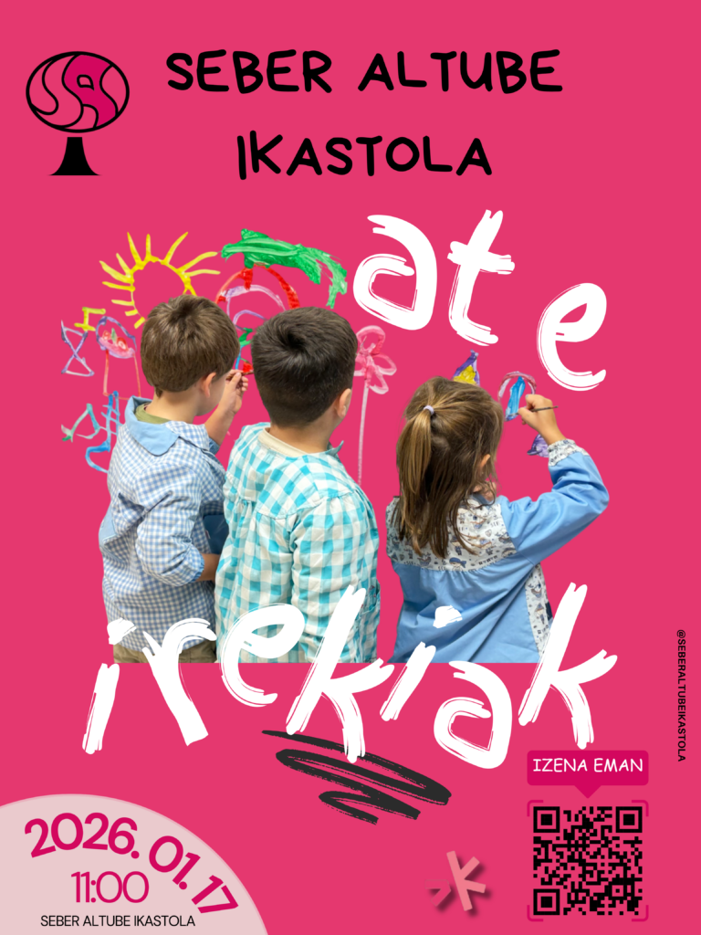 BAGATOZ! Urtarrilaren 17an, goizeko 11etan, Ate Irekien Jardunaldia Seber Altube Ikastolan! Gure eguneroko lana, proiektu pedagogikoak eta ikastolako espazioak gertutik…