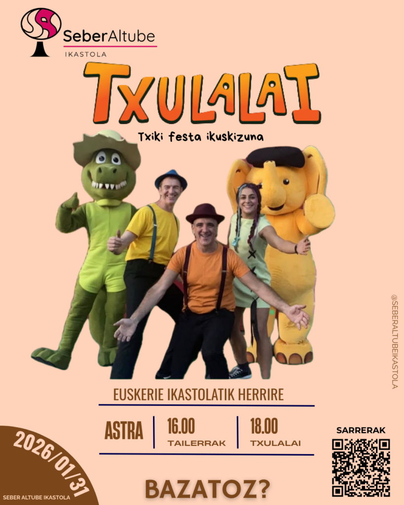 Ikastolak familia guztientzako proposamen berezi bat aurkezten du: Txulalai ikuskizuna; musika, kolorea eta irudimena uztartzen dituen emanaldia. Eguna: Urtarrilaren 31…